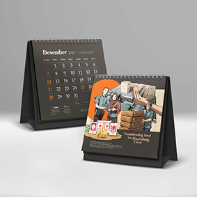 Anda ingin hemat biaya, jumlah pesanan di bawah 300 pcs, desain sederhana, dan kalender lebih banyak diletakkan di meja karyawan internal.
